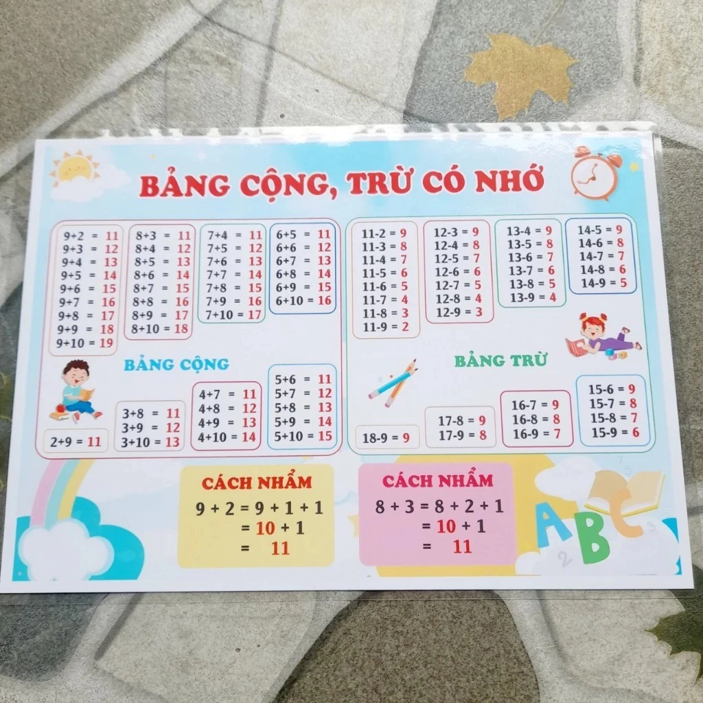 🔥 Bảng cộng trừ có nhớ, in đẹp, ép plastic, kích thước A4, in đẹp đang giảm giá!