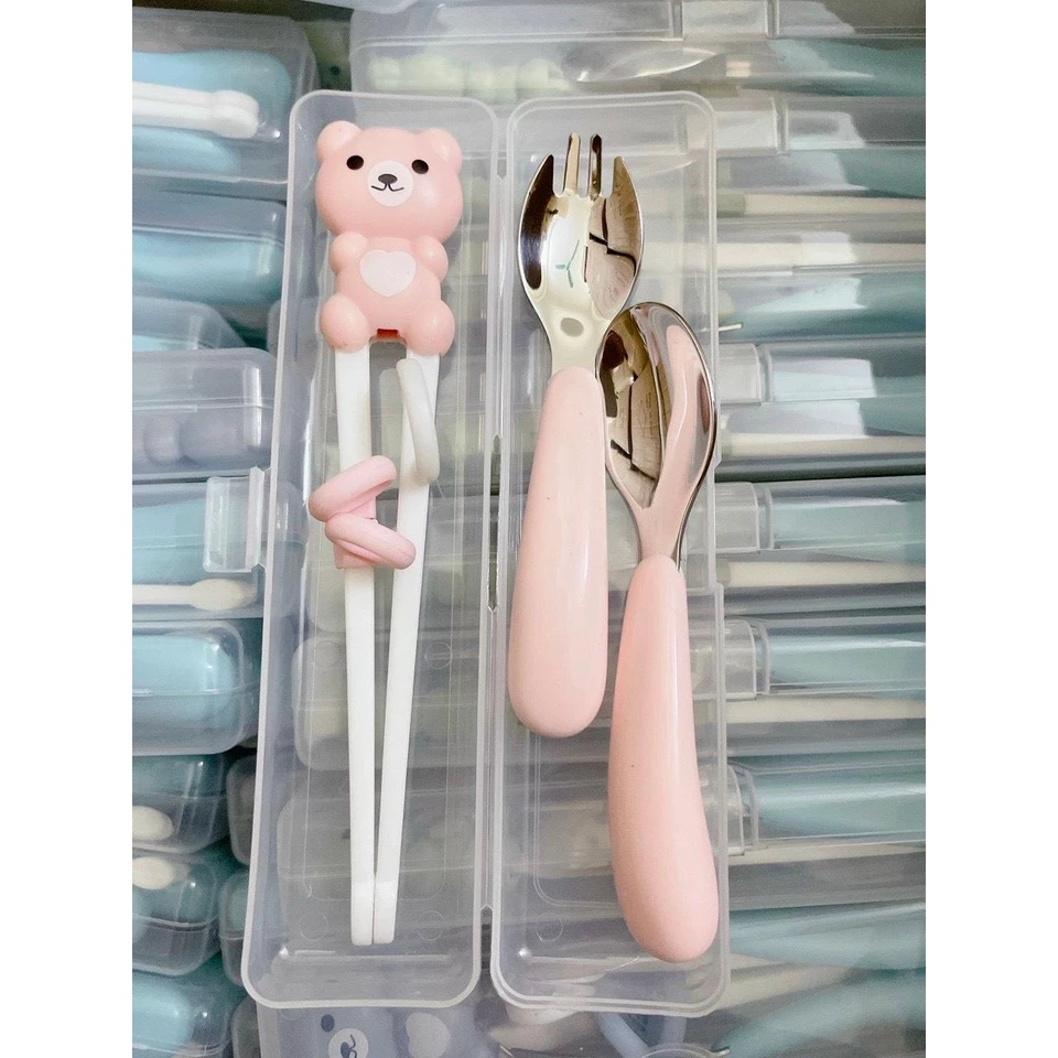 Lợi ích của Set đũa tập gắp, thìa, dĩa hình gấu kèm hộp cho bé ăn dặm cao cấp