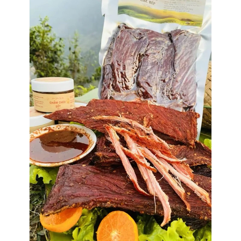 🔥 Thịt lợn gác bếp Sapa Lào Cai (túi hút bạc) kèm chẩm chéo ướt ngon, 500gr đang giảm giá!