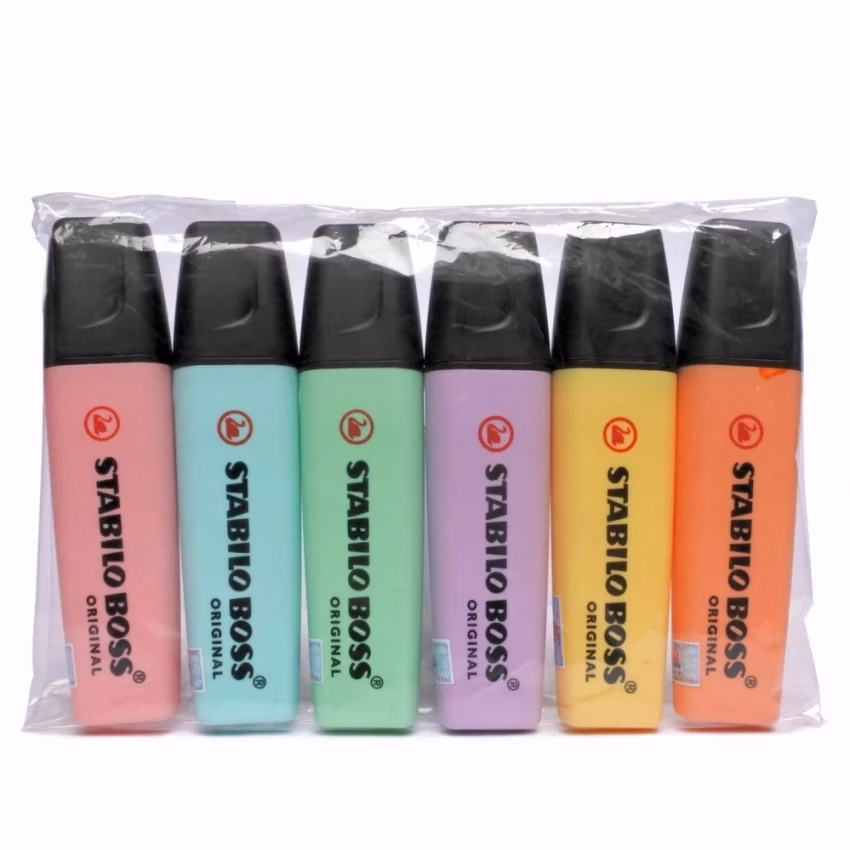 Một trong những lựa chọn tốt nhất là Bộ 6 Bút dạ quang STABILO BOSS ORIGINAL/PASTEL HL(P)70-C6. Bộ bút này bao gồm 6 màu sắc khác nhau, giúp bạn có thể phân loại và tô sáng các thông tin quan trọng một cách dễ dàng.